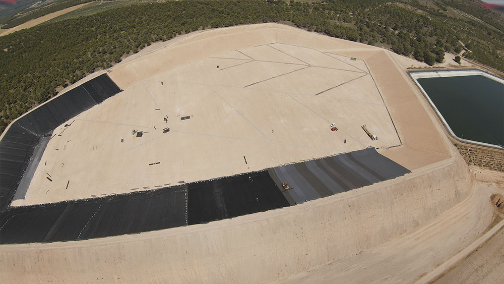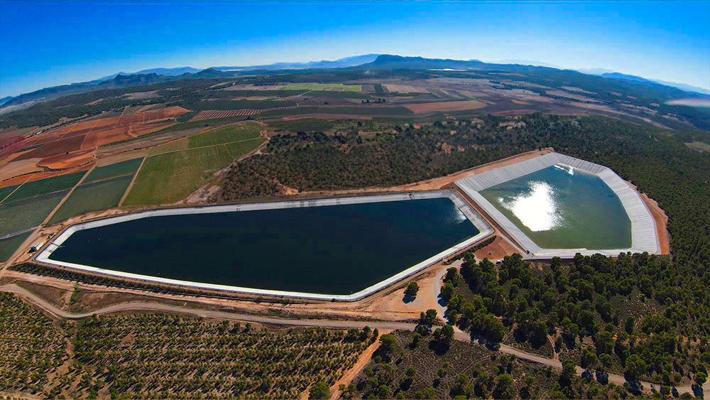 Embalse de tierras impermeabilizado con PEAD de 0.9 Hm3.