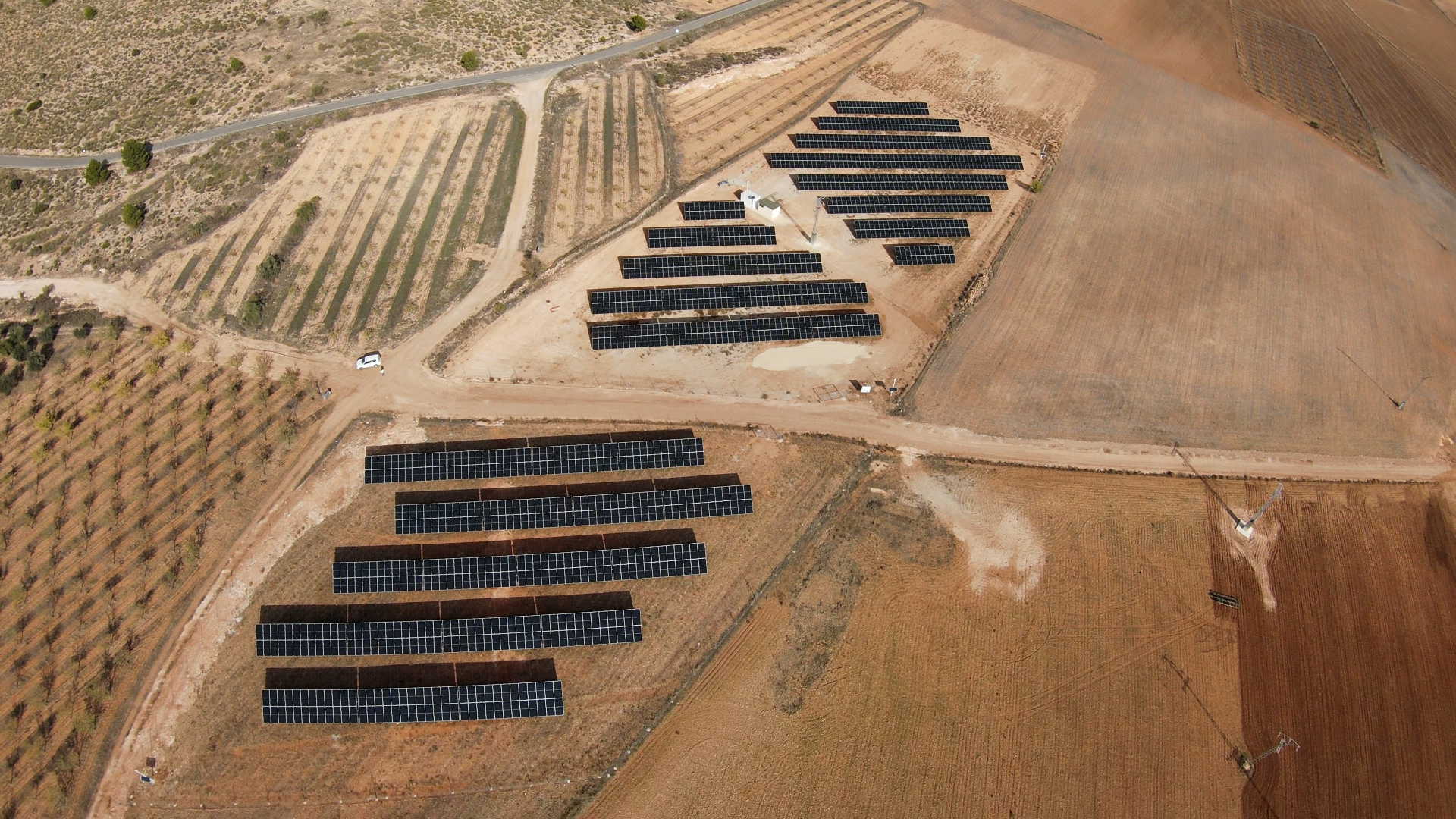 2. Campo solar con sondeo y caseta de media tensión.